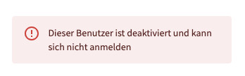 Wenn ein deaktivierter Benutzer versucht, sich anzumelden, wird diese Meldung angezeigt: