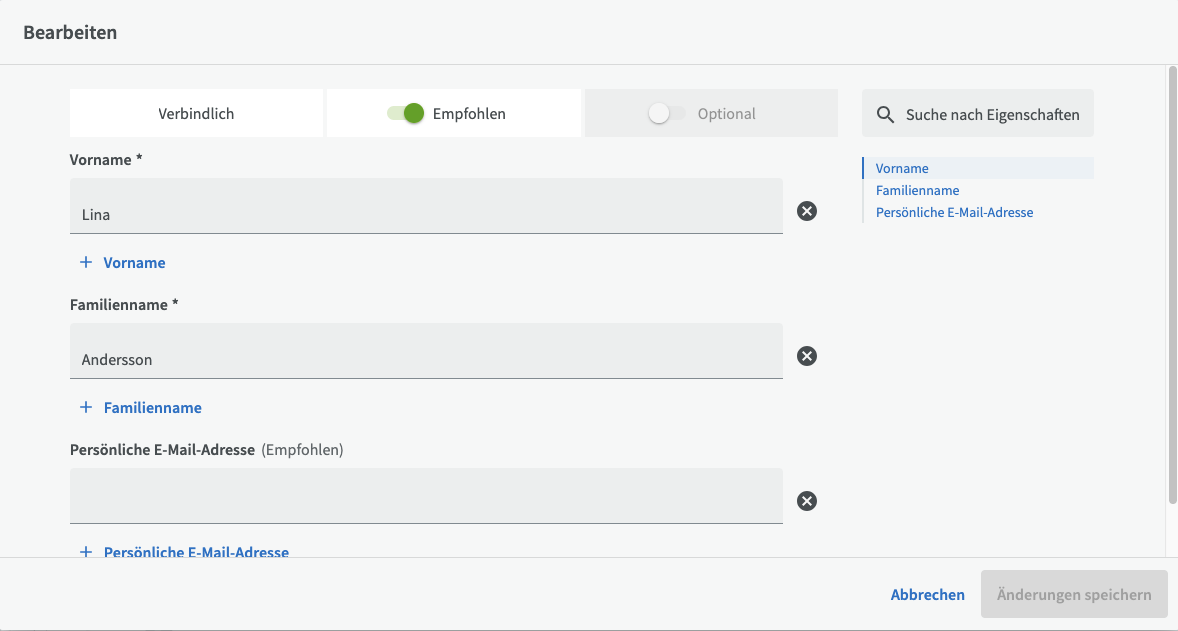 Unter der Schaltfläche Bearbeiten können Sie Ihren Vornamen und Nachnamen ändern und eine persönliche E-Mail-Adresse hinzufügen (sollte mit dem Benutzernamen übereinstimmen).