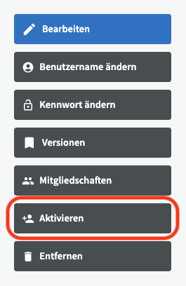 Sie können einen deaktivierten Benutzer aktivieren, indem Sie auf die Schaltfläche Aktivieren klicken. Der Benutzer kann sich dann wieder anmelden und wie zuvor Daten bearbeiten.