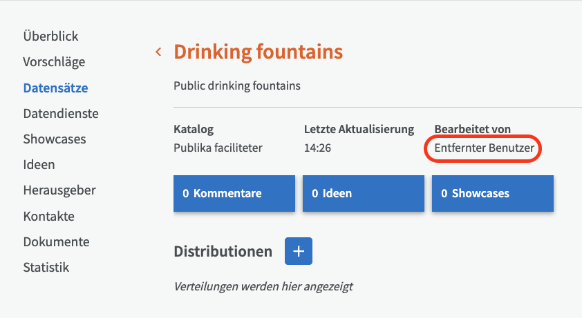 Bitte beachten Sie, dass ein zu löschender Benutzer kein Gruppenmanager für Kataloge sein darf und beispielsweise auch nicht als Ansprechpartner mit Datensätzen verknüpft sein darf.