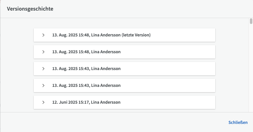 Wenn Sie auf die Schaltfläche Versionen klicken, können Sie sehen, wann die Benutzerinformationen zuletzt geändert wurden, und alte Versionen der Benutzerinformationen wiederherstellen.