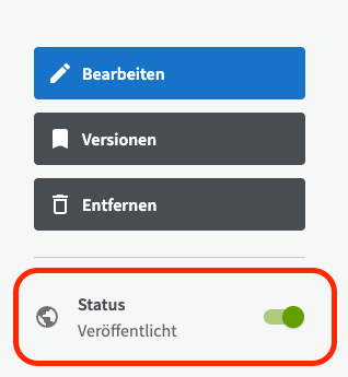 Alle Showcases sind standardmäßig öffentlich, sobald sie erstellt wurden. Sie können sie mithilfe der Schaltfläche "Veröffentlichen" wieder entfernen.