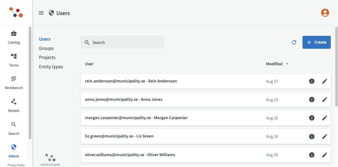 - If the user is a group manager for catalogs or projects, make sure to first promote another user to group manager so that there is still someone who can manage group members' permissions. You can do this from within EntryScape Catalog, Workbench, or equivalent.