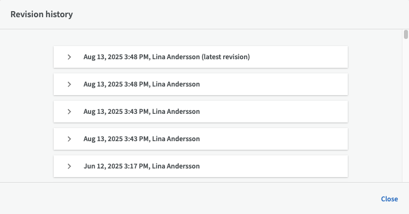 If you click on the “Revisions” button, you can see when the user information was last changed and restore old versions of the user's information.