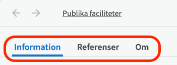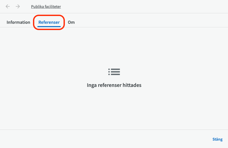 Den andra fliken, "Referenser", har inget innehåll i Adminmodulen.