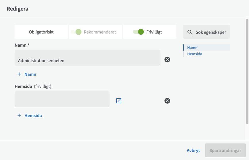 Om du klickar på en grupp och sedan knappen "Redigera" så har du möjlighet att ändra gruppens visningsnamn samt lägga till en hemsideadress till gruppen.