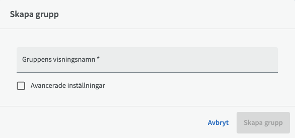 För att skapa en ny grupp, klicka på knappen "Skapa". Då ombeds du fylla i ett visningsnamn för gruppen.