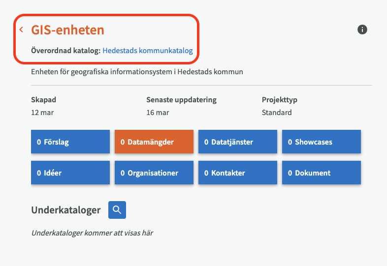 Många dataportaler förväntar sig en enda datakatalog per organisation, men i vissa sammanhang kan det vara bra om olika avdelningar/enheter skapar och ansvarar för sina egna underkataloger.