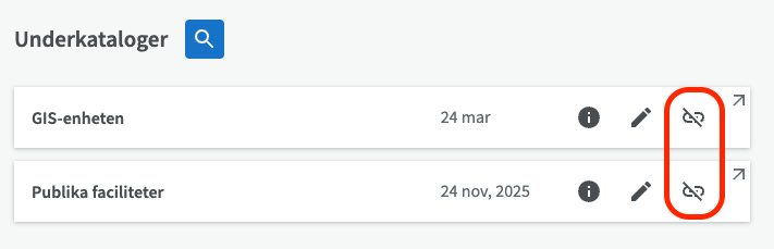 För att koppla bort en underkatalog från en överordnad katalog, klicka på den överstrukna länkikonen längst ut till höger i listan med underkataloger.