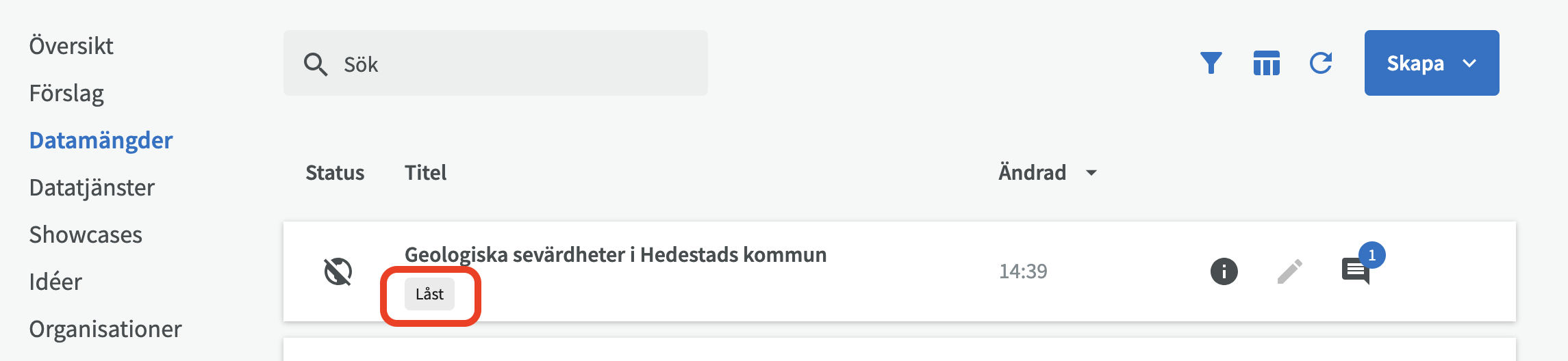Med låsfunktionen kan gruppansvariga låsa datamängder för redigering. Det är särskilt användbart när finns stora mängder data som inte är tänkt att ändras i framtiden.