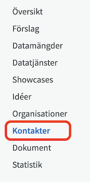 En kontakt anges som en funktionsadress till en datamängd. Det är en ansvarig funktion för datamängdens förvaltning, med ansvar att hålla metadata uppdaterad och korrekt. Använd sökfältet för att hitta den kontakt som du vill ange i din datamängd, eller skapa en ny kontakt.