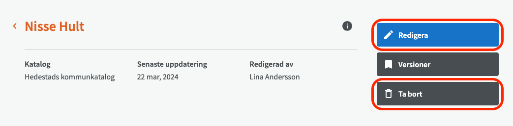Eller så klickar du dig in på kontakten där du kan både redigera och ta bort med knapparna.