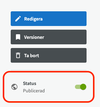 Nyskapade showcases har som standardinställning att vara publika direkt när de skapats. De går att avpublicera via publiceringsknappen.